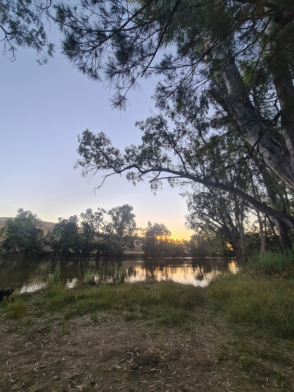 We headed off towards Griffith, as we had read in one of our dog-friendly camping books that there was a lovely spot to camp in Darlington Point. We went through Narrandera, which has an excellent service station that let us refill our water tanks here. It also had a gate leading to the River, so while Jared filled the tanks, I took the doggos to admire the view.